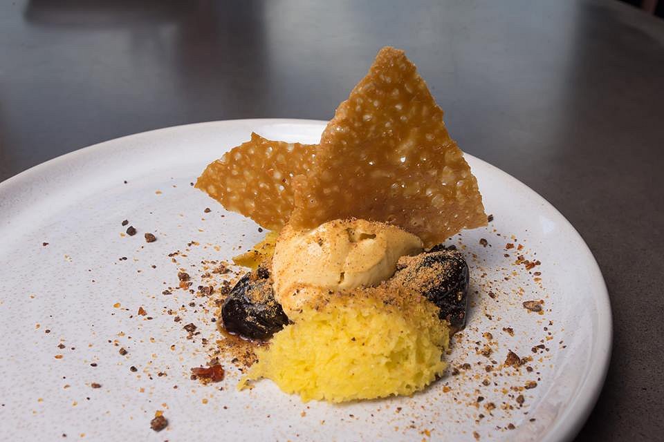 PX prunes, salted caramel, almond ice cream, malt
