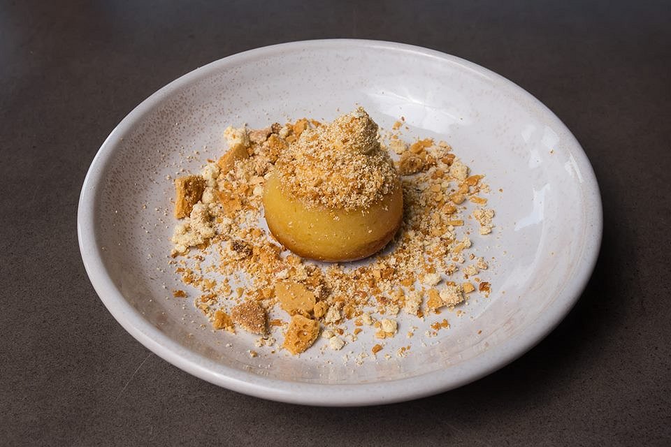 Savarin, cereal milk cream, mandarin, truffle