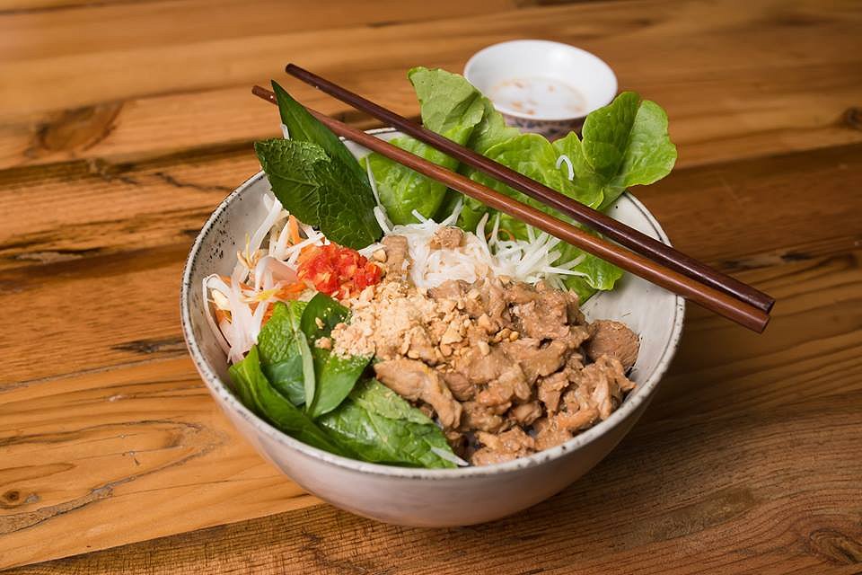 This refreshing salad was comprised of vermicelli noodles, green papaya, shredded cabbage and carrots and stir fried pork. Paired with a sweet and sour dressing and seasoned with chili flakes, this made for a refreshingly moreish blend of components.