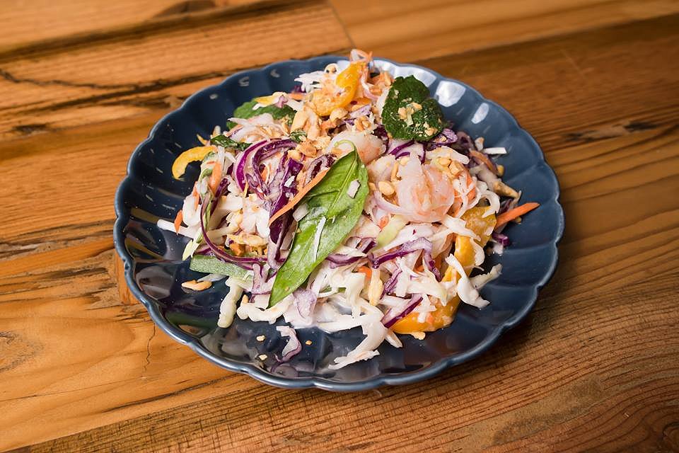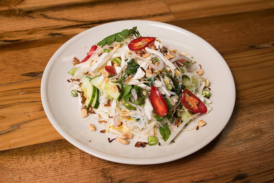 This mixture of noodles, seasonal vegetables and coconut built on the use of simple ingredients to craft a light, fresh salad. Drizzled with a sweet and sour dressing, and garnished with roasted peanuts, chili and coriander, this made for an enjoyable vegetarian option.