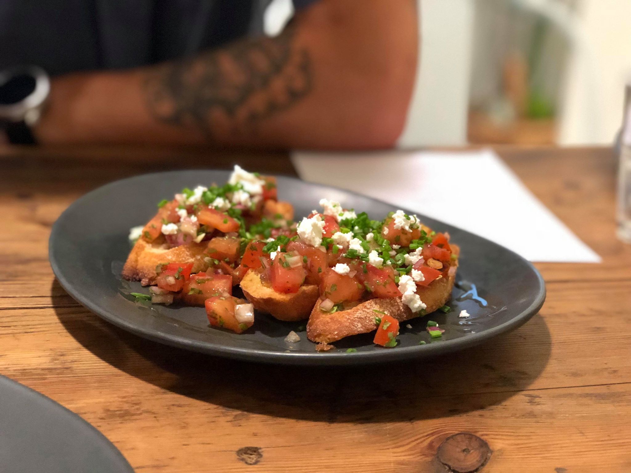 Our first courses included mouth-watering Mushroom Arancini served with house spinach and garlic dip, and an Italian-style Bruschetta, featuring fresh tomato, red onion, basil, Danish feta, and a balsamic glaze on a rustic sourdough baguette.