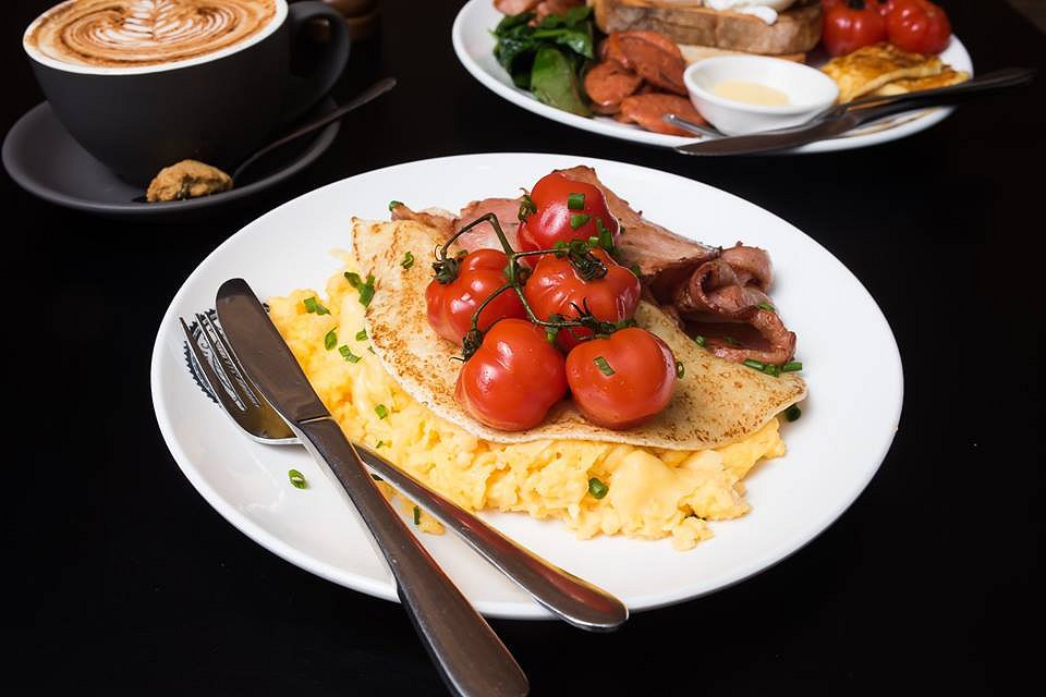 The Breakfast Crepe is scrambled eggs served in a warm savoury crepe, with bacon, Parmesan cheese, truss tomatoes and shallots. If you love scrambled eggs, this is the dish for you. And even if you are sitting on the fence, I promise this is definitely worth a try. The eggs are perfectly light and fluffy, and with the melting Parmesan cheese mixed in, it was a delicious combination already as is. The bacon added a lovely smoky, deeper tone to the light eggs and balanced the sweetness from the beautifully roasted whole truss tomatoes; a perfect additive to the dish that tied all the flavours together; getting the balance of sweet and savoury.