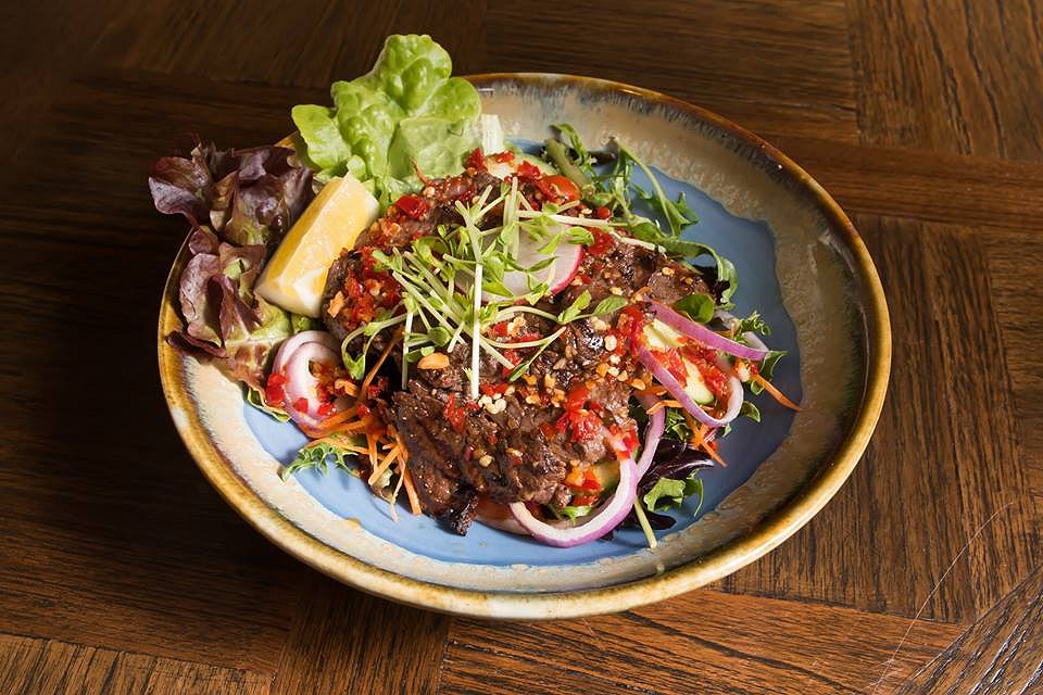 Who says you can’t make friends with salad? Let me introduce you to the BBQ Wagyu Beef Salad. This fresh salad bed holds medium cooked Wagu beef strips, drizzled in a tangy Thai chilli lime dressing.