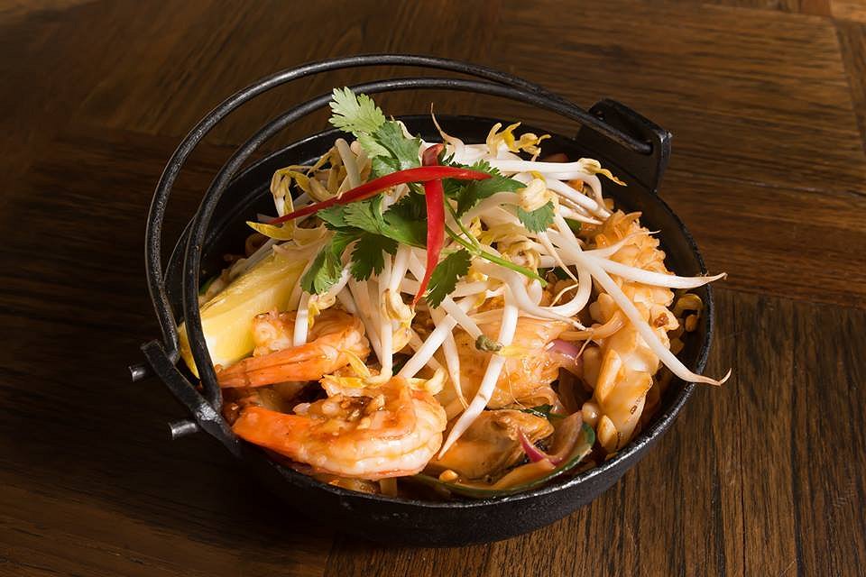 Pad Thai is another traditional dish. We decided to add seafood, paired with the classic fried thin rice noodles, crunchy bean sprouts and a sprinkling of crushed peanuts.