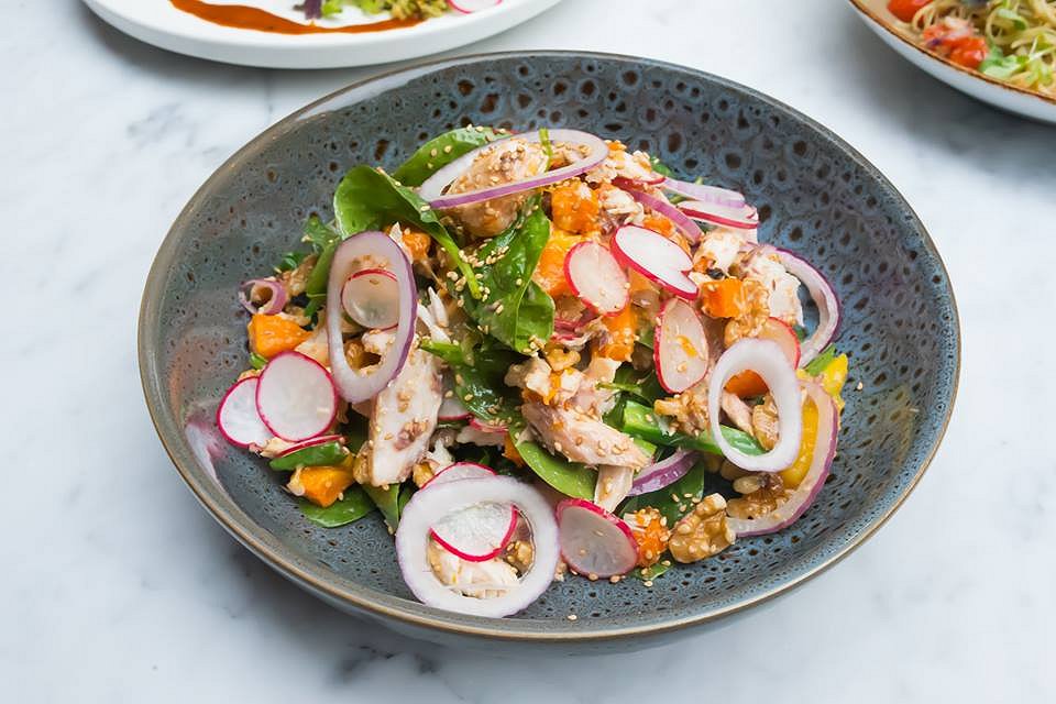 We start with a light and fresh Salmon Tataki, drizzled with kewpie mayo and a ponzu dressing that is rich with sesame bringing a touch of luxe to the silky salmon. All agreed this delectable fish was a cracking start to the evening.