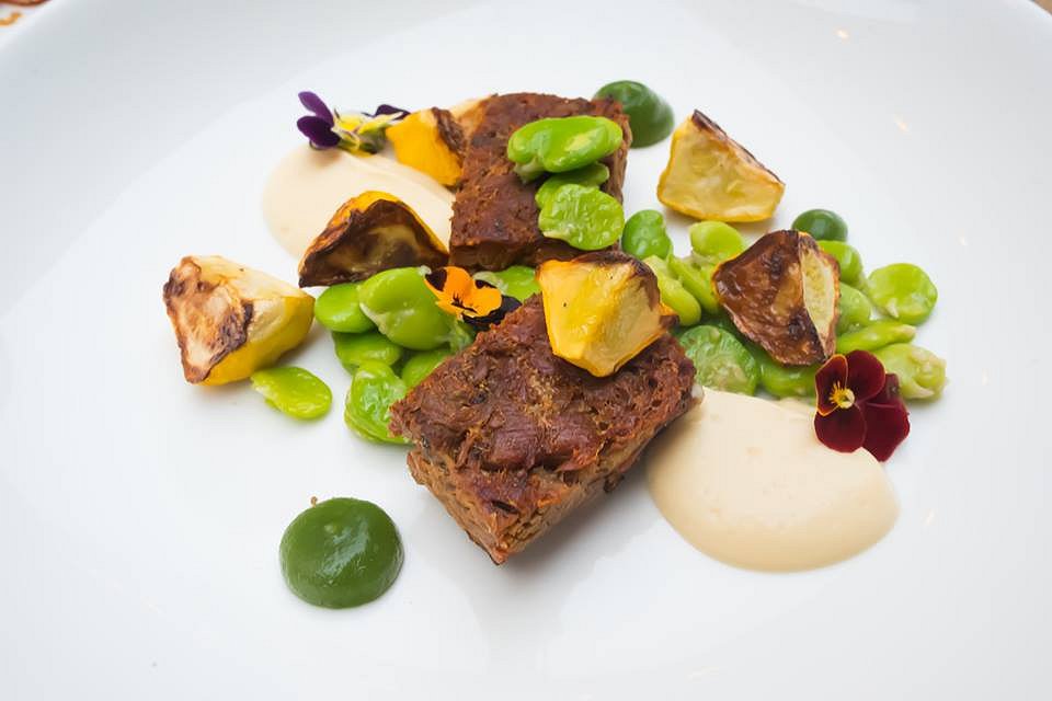 We were very impressed by the Pressed Lamb Shoulder with spiced mint gel, squash, broad beans, snow pea shoots and parsnip puree. Cubes of braised shredded lamb have been pressed and roasted, paired with a classic puree that is smooth and luscious. The pressed lamb is rich and tender perfectly playing off the vibrant broad beans.