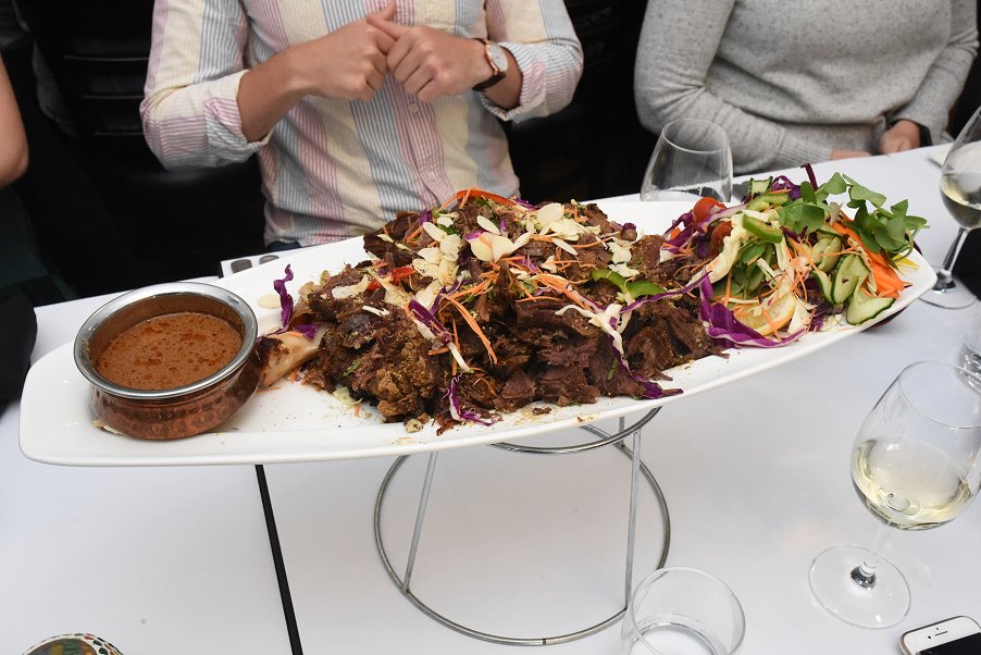 The first dish was the Maharaja Raan, an entire leg of lamb slow cooked for six hours. It was served with a a salad of capsicum, cabbage and carrot salad, and a mild Rogan Josh dipping sauce.