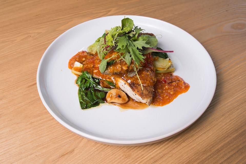 An Asian twist on an Australian favourite, this melt-in-your-mouth pan seared barramundi fillet was paired with stir fried bok choy and lusciously caramelised garlic cloves. Seasoned with Asian spices and drenched in a homemade ginger and chilli sambal, this flavour combination was thoroughly enjoyable.