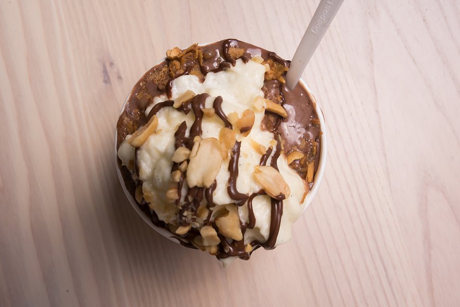 Concretes are rich and creamy frozen custard that come in an assortment of flavours like Peanut Butter Brittle, Cookie Butter, Chocolate Hazelnut Donut, Lemon Raspberry Cheesecake and Almond Toffee Marshmallow. You can even create your own concrete with a variety of sweet treats.