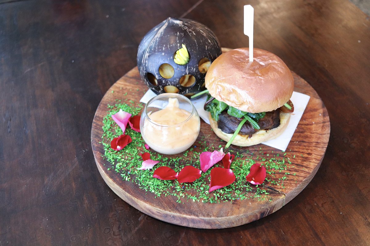 Our favourites of the day included the Mushroom Burger with crunchy waffle fries served in a coconut shell, and the freshly made Mango Smoothie Bowl.