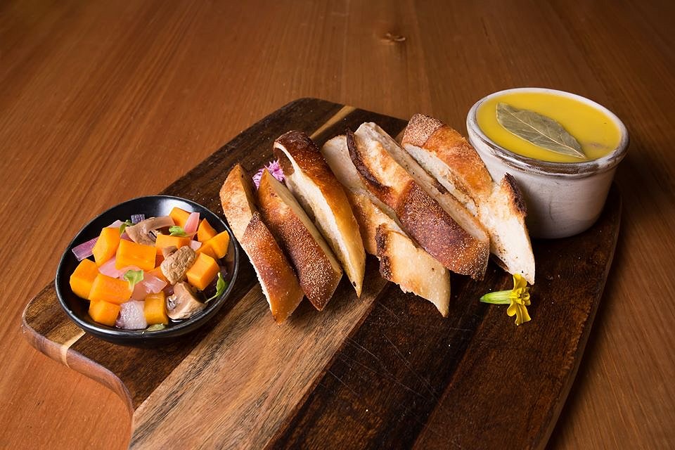Pâté Pickle Platter was a share plate with truffle pâté, assorted pickled vegetables and sourdough baguette. The strong smoky flavour of the truffle mushrooms was prominent and a hero flavour of the dish. This pâté was lovely and creamy and there was a generous serving with a buttery olive oil topping. The crunchy pickles gave a sweet tang that lifted the palate, while the crunchy crust on the bread added a lovely texture balance with the smooth pâté. Overall this was a delicious platter that is sure to get any guest in a good mood.