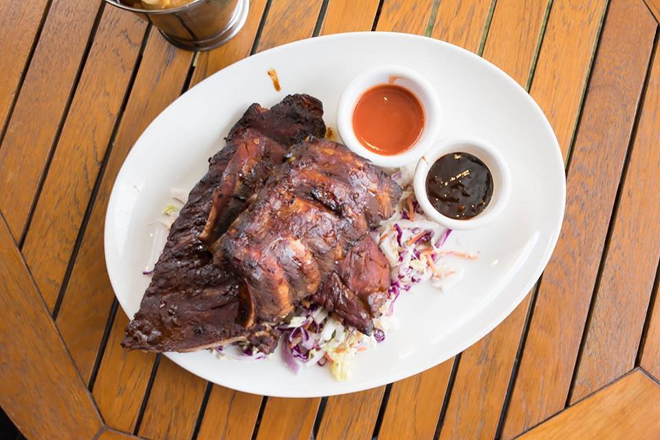 The Bedrock Pork Ribs was another massive dish. The ribs were cooked well and had a lovely smoky, sticky sauce coating that was amazing. The smoky, savoury flavours balanced well with the fresh, crunchy coleslaw that helped to lighten the dish. We also got served delicious curly fries to add to our meal. A thick sweet BBQ sauce and a hot peppery sriracha were served on the side for dipping your ribs in to and add to the flavour, making your ribs extra saucy, which I love. It also was a great option for those who like to make their ribs a bit sweeter or a bit spicier which helped to cater this dish for everyone’s taste buds. This generous serving ended up defeating us in the end and we couldn’t finish it all, but boy did we try.