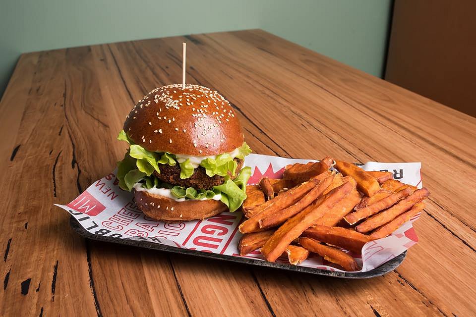 This burger had both a panko crumbed pork loin and fried chicken, topped with bacon, American cheese, slaw and BBQ sauce. Both the pork loin and fried chicken had been cooked perfectly, with a golden crunch. The light slaw helped to break up the meat elements, and BBQ sauce for that extra tang.