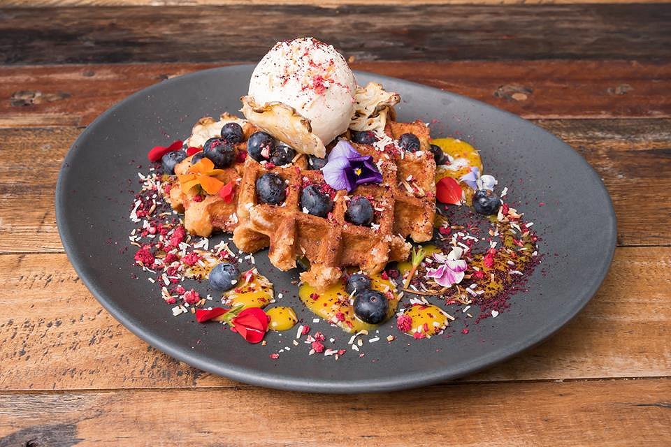 The second dessert we tried was the Pina Colada Waffles; with mango, toasted coconut, blueberries, raspberry dust, pineapple crisp and coconut ice cream. This dish will be the best Pina Colada you will ever taste. The waffles are real Belgium ones, cooked perfectly with a slightly hard outer and soft inside. All the other elements are sweet, refreshing and fresh.