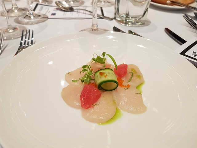 On arrival we were warmed up with a glass of Pol Roger Brut Champagne. The first course was fresh from sea with Hot Smoked Coffin Bay Oysters. They were warm with a bitter-sweet tinge. The texture was smooth and it felt like you could taste the ocean. The presentation fitted the theme as the oysters sat on a bed of sea salt.