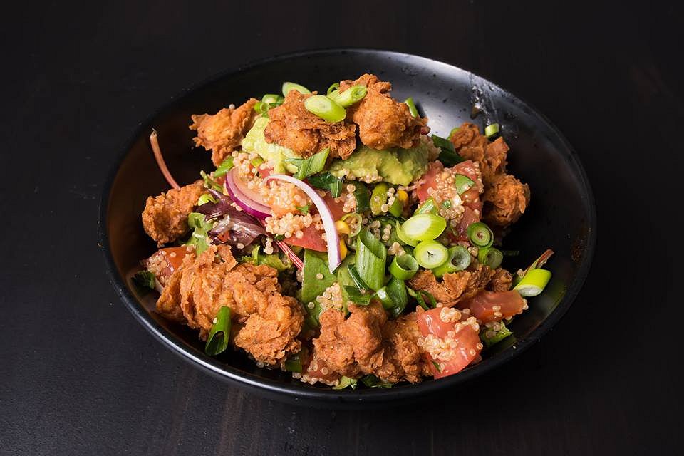 The next dish we tired was from the salad menu. Before trying this dish, I was a little sceptical to try a salad in a take away shop, but this was probably my favourite dish on the menu. The Jerk Salad had fried chicken (can have it grilled to), Quinoa, roasted corn, tomato and red onion salsa, avocado, and Caribbean jerk dressing. I loved how fresh each and every ingredient was. It almost reminded me of a poke bowl with the salsa and avocado placed on top. Everything was so incredibly healthy about this salad and was then topped with some naughty fried chicken. A must tries when coming to visit.