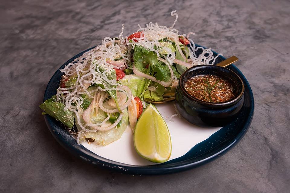 Fourthly we moved onto the Beef Tartare with fragrant herbs, noac cham and rice paper. When beef tartare is made well, nothing beats it. I was incredibly impressed with the excellence of this dish and the love that had been put into it. The beef was very good quality and had so much flavour and authenticity. I enjoyed the addition of the crispy, puffed rice paper, we spooned the tartare into this, which then created a crunchy element.