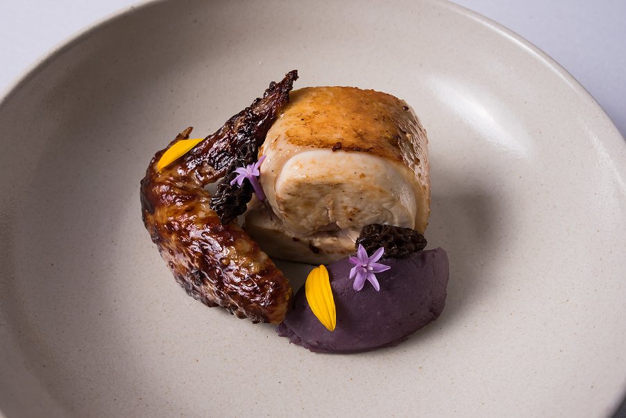 Nomad Farm Chicken is made with galantine, a glazed wing, congo potato, morels, rhubarb, mountain pepper consommé and anise hyssop. The chicken, sourced from Currency Creek, was cooked well. By pan searing the chicken, it brought out lovely strong flavours in the meat that paired perfectly with the herb-coated skin, which was soft and full of flavour. The chicken wing was glazed in a sticky sauce that added a sweeter balance to the heavier, earthy flavours of the meat. The wing also gave a texture balance with a slight crispy skin. The purple congo potato mash was soft, creamy and smooth, while the anise hyssop herb added a slight tang to the dish.