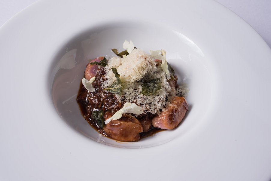 The Paroo Kangaroo and Gnocchi was created with braised kangaroo tail, beetroot gnocchi, juniper, saltbush and shaved Pyengana cheddar to top. The braised tail was beautifully soft and tender and held deep and rich meaty tones. The kangaroo meat was a lovely pairing to the soft and warm beetroot gnocchi. Cooked well, the gnocchi held a slight sweetness from its beetroot base that balanced with the fuller red wine jus that marinated the kangaroo meat. The shaved cheddar on top lifted the deep and rich flavours and tied each component together.