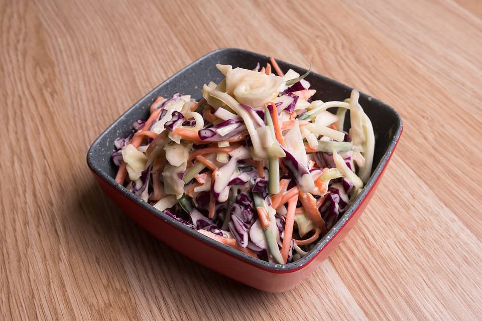 Fresh coleslaw made from finely cut cabbage, carrot and cucumber was the perfect accompaniment to the other dishes. Dressed with mayonnaise, this salad was light and refreshing.