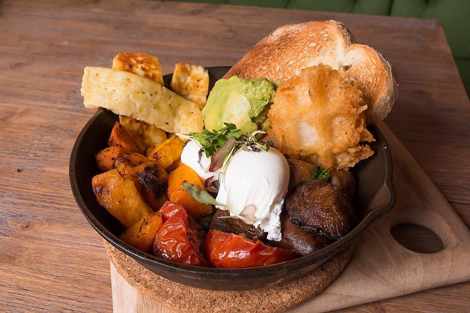 One for the vegos out there, the Garden Gangster serves up roast tomato, roast pumpkin, grilled halloumi, truffled mushrooms, spinach, two poached eggs, with a house made crispy potato waffle hash brown (emphasis on crispy!). Served with toasted sourdough bread and, of course, creamy smashed avo, this dish is the breakfast of champions.