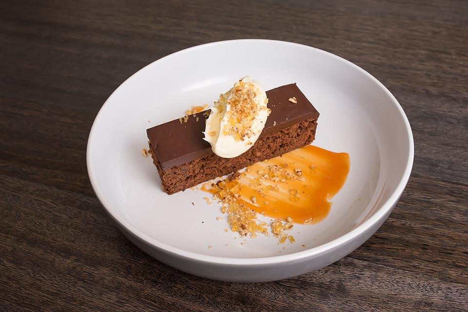We start with the rich and then work to the lighter desserts – a smart move. We start with an inch-thick slab of 56% Ecuador Dark Chocolate and Pecan Torte; bitter and not overly sweet (perfect for pairing with the above cocktails). Pecan’s create the same texture as the walnuts in a carrot cake, peeking out of the soft sponge with crunch and pizazz. Range of textures from the buttery silk of the icing, and impeccable crunch of the pecan praline. The sweet potato caramel brings in a umami like a pumpkin pie.