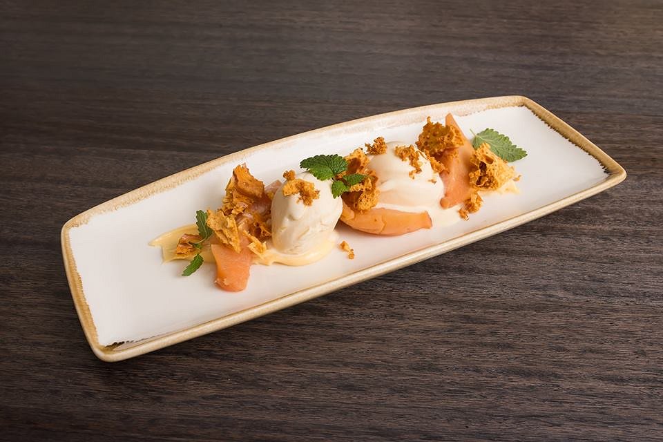Time for dessert and after 7 incredible savoury dishes I can’t wait to see what the sweeter side has in store for us. But first, there is some cocktails on the bottom of the dessert menu that have caught my eye. An almost sickly-sweet butter cake Martini of Vodka, Frangelico, butterscotch schnapps mixed with a little cream and vanilla is a sweet tooth’s dream and an After Dinner Mint; a creamy concoction of Crème de Menthe and Crème de Cacao is an alcoholic mint slice.