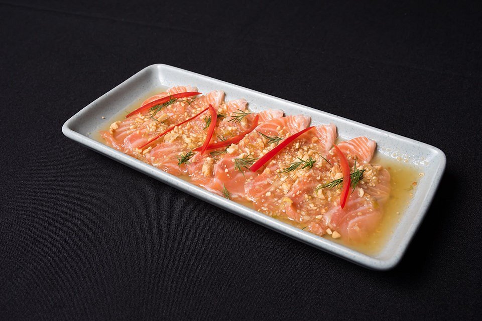 The Salmon Sashimi is not a traditional Thai dish but was fused with delicious Thai flavours; a Nahm Jim dressing, topped with peanuts. The Nahm Jim dressing is slightly tangy with a hint of sweetness, which paired well with the fresh salmon. The smooth and fresh fish was cut and prepared perfectly, while the crunchy peanuts added an earthy element and a crunchy texture to the overall dish.
