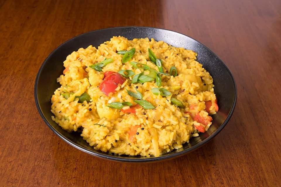 When I saw the Lamb Shank on the list of proteins I knew I had to have it and chose to pair it with a Madras sauce. The chef’s special south Indian Madras sauce is full of spices, coconut cream, mustard seeds and curry leaves. The exposed bone is a tell-tale sign of how the meat will simply fall off the bone when pressed with a spoon. A thick saffron hued sauce forms a blanket over the shank, honey sweet, earthy and tingles the tongue perfectly. Every Indian restaurant must have a signature dish that sets the apart from the rest and this is Khichidi’s. We both decided this was the best madras we have ever had and I’ll be having this again and again.