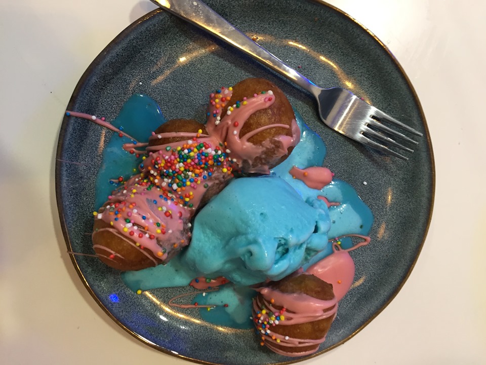 For a more decadent take on this classic dish, try the loaded lukoumades. For the true blue Aussie there is the Lamington with strawberry jam and shredded coconut, or to really satisfy, there is the Snickers with melted chocolate, drizzled caramel sauce and Snickers gelato. I tried the Rainbow bubblegum: lukoumades topped with melted pink chocolate, 100s & 1000s and blue bubble gum gelato. The dessert is a combination of sweet and sour flavours that reminded us of eating ‘Bubble O’ Bill’ ice creams during summer as a kid.