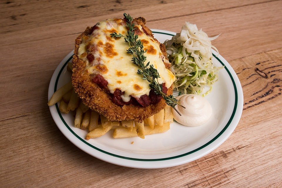 It was a cold night and I’d had a pretty tiring day at work – Parmi’s tend to be the panacea for that. A rather thick, unprocessed breast is topped with cheese and a homestyle tomato sugo that is dark, slightly sweet and chunky. Fennel slaw is garlicky, fresh and so much better than the underwhelming garden salads with a watery dressing that generally adorn a Parmi. I loved the inclusion of garlic aioli added to the side of the plate for chip dipping, unusual but very, very welcome and this should become the new standard.
