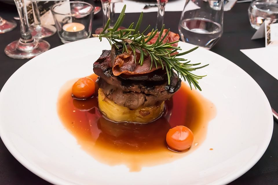 The Smoked Salmon Timbal was made up of avocado, cherry tomato, chilli and coriander salsa encased in fresh smoked salmon served on a pickled carrot and cucumber salad, complemented with a horseradish cream and crispy fennel salted melba toast. As a fan of smoked salmon, the amount was rather generous. Hidden inside the small mountain of fish was a light, refreshing salsa that was balanced by a tangy salad. This was coupled with the Hugh Hamilton 2018 ‘Agent Provocateur’ Grenache Gewurztraminer Viognier. The wine has the smell of fresh roses and the taste of fruit on the palate. Typically matched with duck but does just as well with salmon.