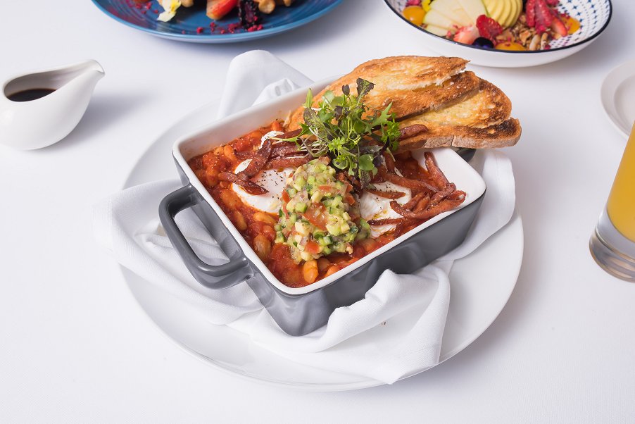 Taking inspiration from Mexican flavours, the Spanish Eggs features a poached egg and beans mix, served with tomato and avocado salsa, Hahndorf chorizo, and salty tostado. This dish is perfectly balanced on the palate with a blend of sweet, salty, and acidic to make a well-rounded meal.