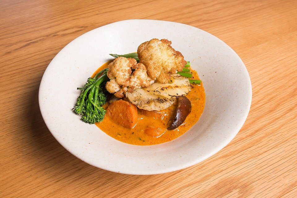 This one really packs a punch and we definitely recommended it if you like to work up a sweat. This red curry contains chunks of zucchini, sweet potato, eggplant, cherry tomatoes in a HOT coconutty sauce, and topped with two grilled pineapple slices, two florets of fried cauliflower, and two stalks of broccolini. As chilli is the star of the show, the two sweet pineapple slices serve as a relief if your tastebuds begin to struggle. The cauliflower, broccoli and pineapple on top give the dish a crunch while the veggies in the curry melt in the mouth. This Thai red curry will 100 percent warm you up in the winter – seriously, leave the scarf at home and bring your gluten-free friend.