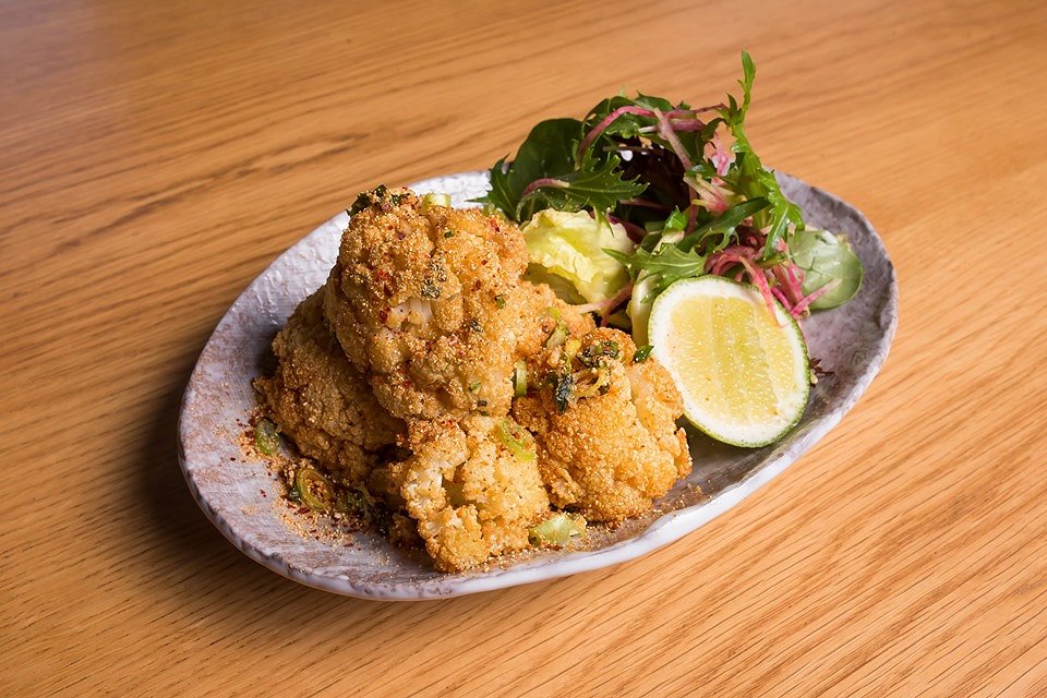 This dish is again more on the entree side of things, utilising an estimated quarter of a cauliflower, but by no means lacks flavours. The fried cauliflower florets are coated in a spicy larb seasoning powder, served with a generous amount of mixed green herbs and a slice of lime. If you’re not a huge spice fan, this dish may not be for you, however the lime certainly helps cut through the heat, making for a refreshing relief. As the cauliflower is fried, it is quite greasy indeed, but with the addition of fresh greens balance is achieved. Gluten-free friends, this one is for you!