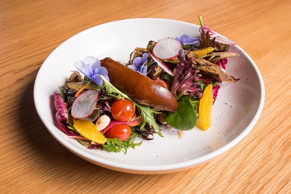 Moving awaaaay from the spice, this tomyum linguini is not your standard menu item – perhaps the only tom yum linguini being served up in Adelaide! Italian meeting Thai may have you raising an eyebrow, but you may be as pleasantly surprised as we were. Tom yum is traditionally a sour soup with sweet notes, and those flavours are definitely the feature of this dish, minus the soupiness. Aiding the sourness are thin slices of crispy lemongrass which is present throughout the pasta, whereas a saucy coconut base contributes to the sweetness…and creaminess! Part of the heartiness in this meal comes from the mushroom medley consisting of grilled king oyster, enoki and field mushrooms which are tossed through the linguini, along with wilted cherry tomatoes providing the funky freshness. Give it a chance, you might be blown away by the unique combo!