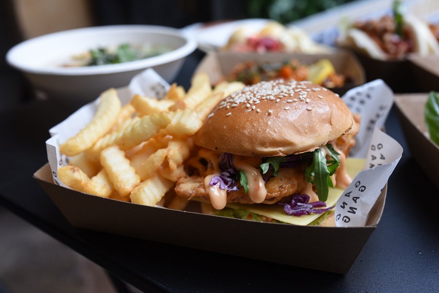The burger stand Gang Gang lived up to their hip hop name with an appearance by Cardi B at Gathered. The signature chicken burger Cardi B consists of crispy buttermilk fried chicken, slaw, smashed avocado, cheddar, Balinese salsa, rocket and sweet chili mayo. The flavours were as vibrant as the colours of the ingredients. Served with chicken salted crinkle cut chips. Gluten free and plant-based burgers available too.