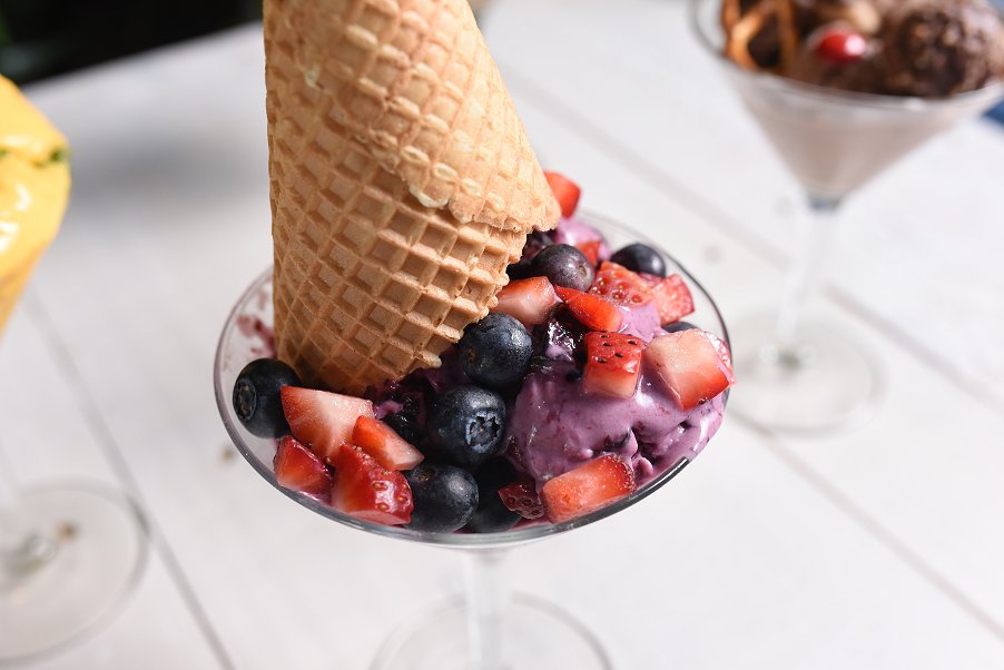 The Berrylicious flavour certainly delivered on its name. Following the evaporation of the cloudy liquid nitrogen, a vibrant purple coloured ice cream is unveiled in the bowl. After serving, the ice-cream is topped with fresh strawberries, blueberries and an waffle cone creating a dessert which is so picturesque its almost too attractive to eat – but we had no problem polishing it off!