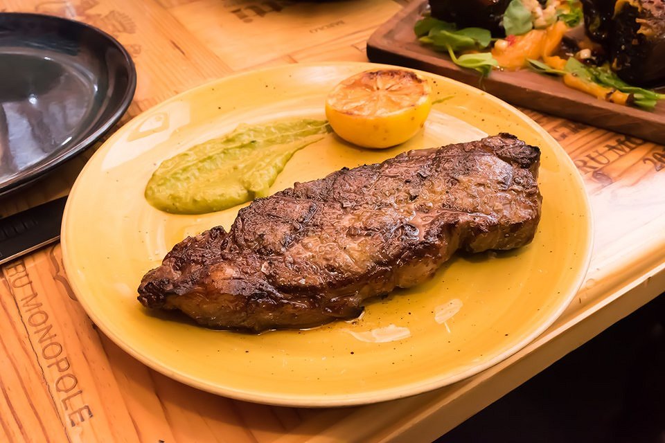 We now arrive at the piece de resistance – Gaucho’s lauded 300g Darling Downs Wagyu striploin, aged 100 days with a marble score 5+ with green harissa and char grilled lemon. The plate is simple; half a charred lemon and green harissa sauce on one size and the sizable steak taking up the other half. The charred steak glistens and is expertly sliced at the table, where minimal juices flow out as the steak has been rested well. A textbook crust of meat that has seen high heat, frames the inner pink core, each slice tender, with robust flavour. The addition of the piquant green harissa sauce creates a harmony of freshness with the grilled meat.