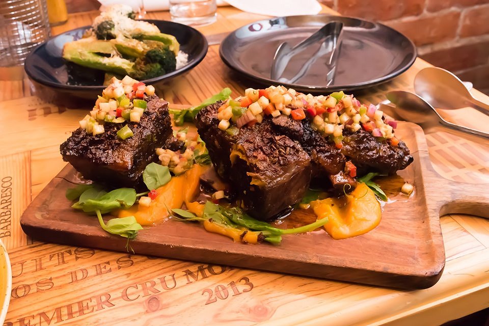 I was looked at like I was a little mad when I suggested something other than steak from the menu but despite their reputation and multiple awards for steaks I felt the need for a broader experience. There is more beef short rib than any one person could possibly eat, the meat ever so rich and tender. The succulent, dense ribs are topped with a refreshing stone fruit salsa punctuated with apple, capsicum, red onion and green chilli and accompanied by a smooth sweet potato mash.