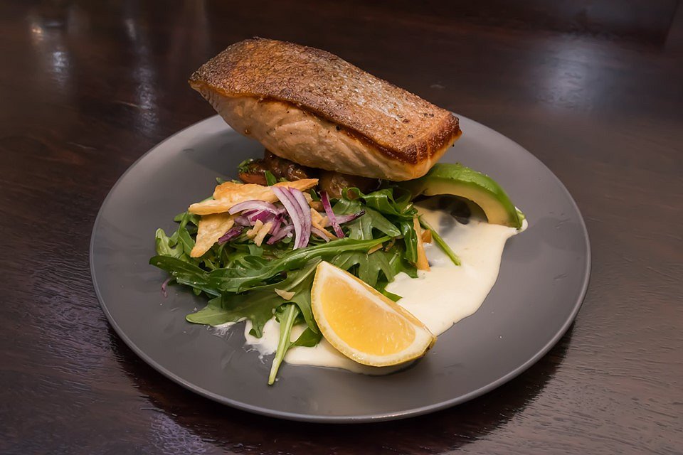 You will find the Angus Pure T-bone and Angus Pure Rib Eye on the seasonal menu along with Atlantic Crispy Skin Salmon or 300gr Murray Valley Pork Cutlets if you want to explore beyond the pastures. We got to try their Crispy Skin Atlantic Salmon that came with kipfler potatoes, avocado, red onion, rocket, paired with wasabi aioli. It was definitely crispy on the skin, they nailed this dish perfectly. Market Fish of the Day was also ordered and that day was battered whiting fish and chips but when we asked if we could have it grilled instead, they were only too happy to accommodate.