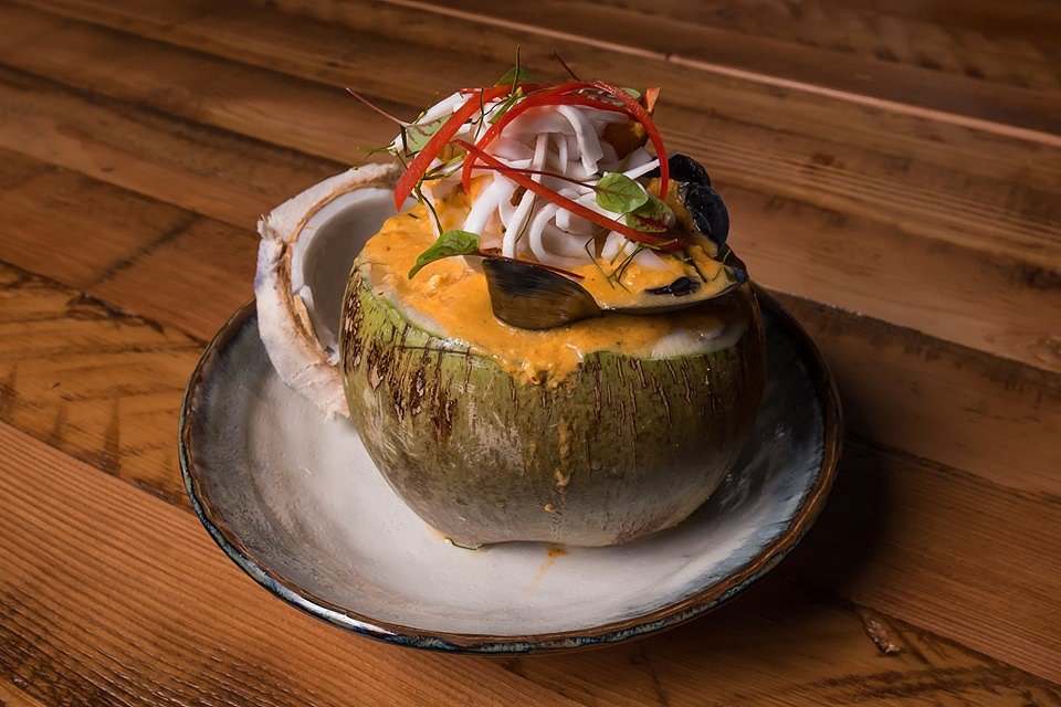 Using the base of red curry paste, this dish came out beautifully presented in a young coconut. With so much love for this seafood curry, they have prawns, mussels, and squid. Garnished with shredded coconut flesh and Thai basil, making it such a pleasant dish on the eye and on the palate.