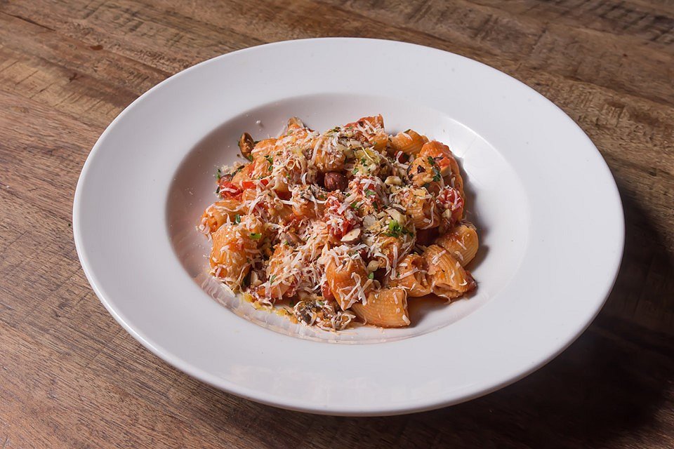After warming up the palate, we got stuck into the four main dishes—Gnocchi Pesto, Mushroom Rigatoni, Roast Tomato Risotto, and the Squashed Cauliflower Cherry Salad. All of these dishes were conversation-starters in their own ways, but it was the Gnocchi Pesto that really captured our hearts. There’s something about the gourmet balance of fluffy potato dumplings with leafy pesto that really speaks to the soul. And the added crunch of toasted walnuts made for a welcome way to experience the Jamie twist. A close second had to be the creamy Roast Tomato Risotto, which was so full of rich tomato flavour and buttery cheesiness that one spoon just wasn’t enough (nor was five).
