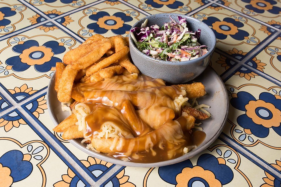 The Loaded Schnitz is a traditional crumbed chicken schnitzel, stacked with original chips, kettle cooked gravy and grated mozzarella cheese; served with rainbow slaw and more original chips on the side. You may have heard this from us before but Schnitz makes excellent chips and what a delight to have chips loaded as a topping as well. The dish was also very cheesy. This paired perfectly with the warm gravy, which also added a deeper, almost richer flavour to balance with the saltiness of the crisp chips. The batter on the schnitzel was not too thick, while the chicken centre was lovely and tender. The sweet and fragrant slaw was juicy and crunchy, holding a slight tang but gave a lovely and refreshing flavour to balance the richer and filling schnitzel topping.