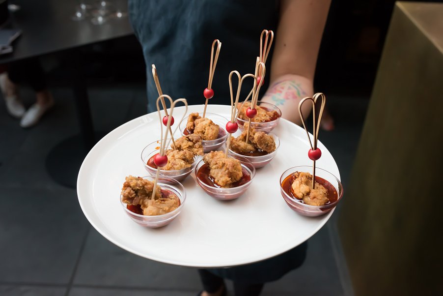 Chef Chung Jae ran the kitchen by himself the night of the opening launch creating some of the best dishes which include; the stuffed mushrooms with teriyaki and yuzu sauce, pork belly on mini toast with blue cheese sauce, stir fry prawns, and of course the popular KFC (Korean Fried Chicken) in a spicy dipping sauce. They were all very tasty and delicious and like we have predicted, fresh off the oven and stove. We saw him worked it, the chef who has years and years of experience under his belt, showed nothing but calmness, consistency and joy.