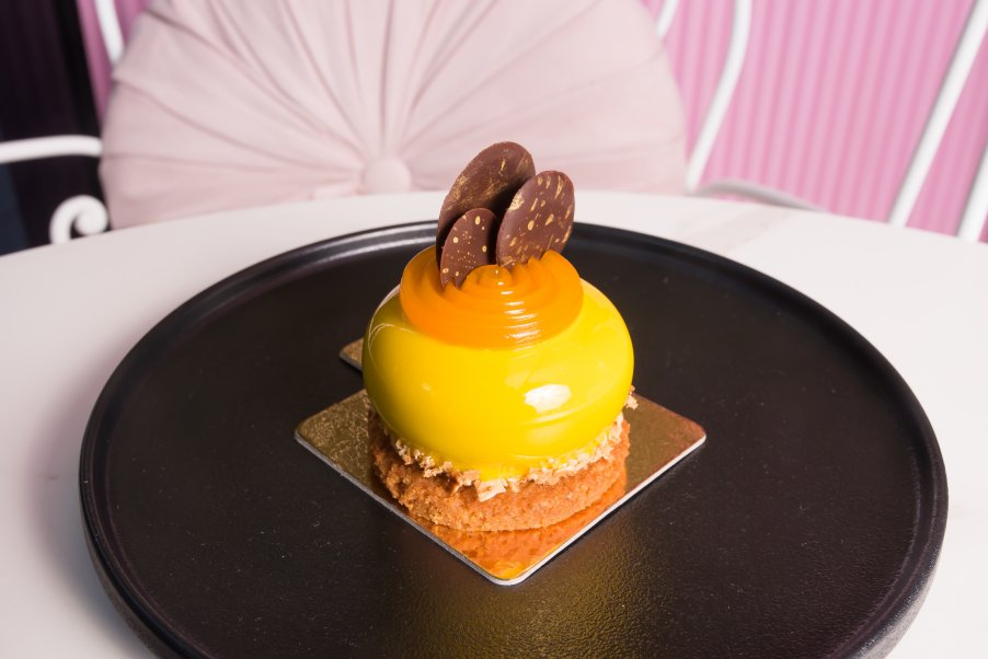 The Sun-kissed is Love, Stephy’s head chef’s specialty, and has been practised to perfection. The dessert is a perfect balance of chocolate flavours and tropical infusions. A swirl of mango and lime jelly perches atop the decadent milk chocolate mousse. A passionfruit cremeux adds a beautiful creamy sensation and light, tropical flavour to the dessert. Caramelised coconut adds beautiful flavours to the dish, and also a gorgeous crunchy texture to complement the creaminess of the milk chocolate mousse and passionfruit cremeux. A coconut base adds more coconut flavours to the sweet, as well as an incredible crunch! The textures of both creaminess and crunchiness make this sweet a pleasure to eat, and the collaboration of chocolate and tropical flavours is a risky partnership, but the Sun-kissed pulls it off with perfection and creates a one-of-a-kind dessert!