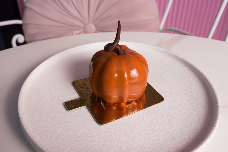 The Spooktacular is the perfect addition to the sweets at Love, Stephy for the spooky season! Shaped like a tiny pumpkin, the sweet is glossy and cute, and comes with a swirl of dark chocolate for the stem. The outside layer is a creamy and sweet caramel mousse, which is balanced perfectly with smooth and silky creme brûlée inside. Raspberry angel cake adds a gorgeous, fruity tang to the centre of the dish, and brings a whole new flavour to the sweet. The raspberry paired with the creamy caramel and creme brûlée is delightful on the palate, and creates an incredible taste sensation. Although made for the Halloween season, there are absolutely no tricks in this delightful treat!