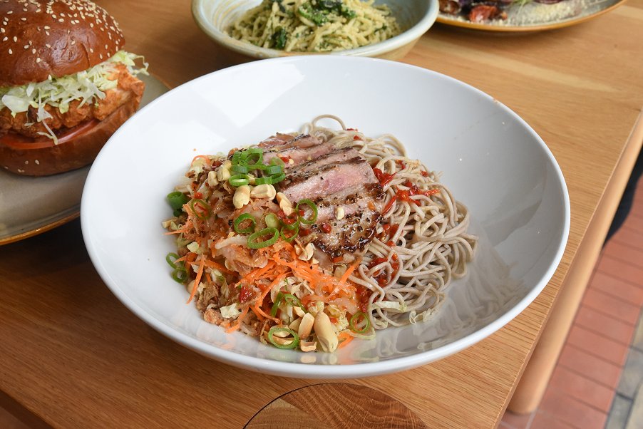 The Soba Noodle Salad is a unique dish which combines asian-inspired flavours, pasta, and beef, to make a delicious summer salad! Cooked soba noodles are cooled, and paired with teriyaki dressing, peanuts, and crispy shallots. This combines to make an asian-infused flavour, with the smoothness of the noodles and the crunchiness of the peanuts and shallots. Asian slaw brings a cool sensation to the dish and adds a burst of colour. Seared beef is allowed to cool and paired with this dish, giving rich flavours and a hearty boost of protein.