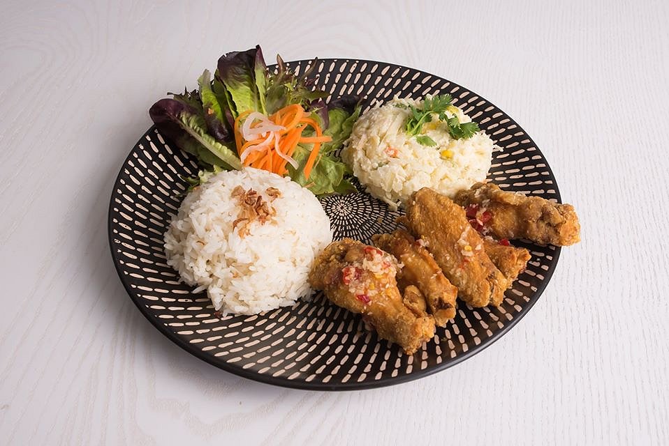 The Vietnamese Mama Wings Rice Set comes with crispy chicken wingettes. It is deep fried and dressed with a perfectly balanced Vietnamese fish sauce dressing. Mama Tz have created this dish with more of a Korean twist, serving it with a generous portion of potato salad and rice.
