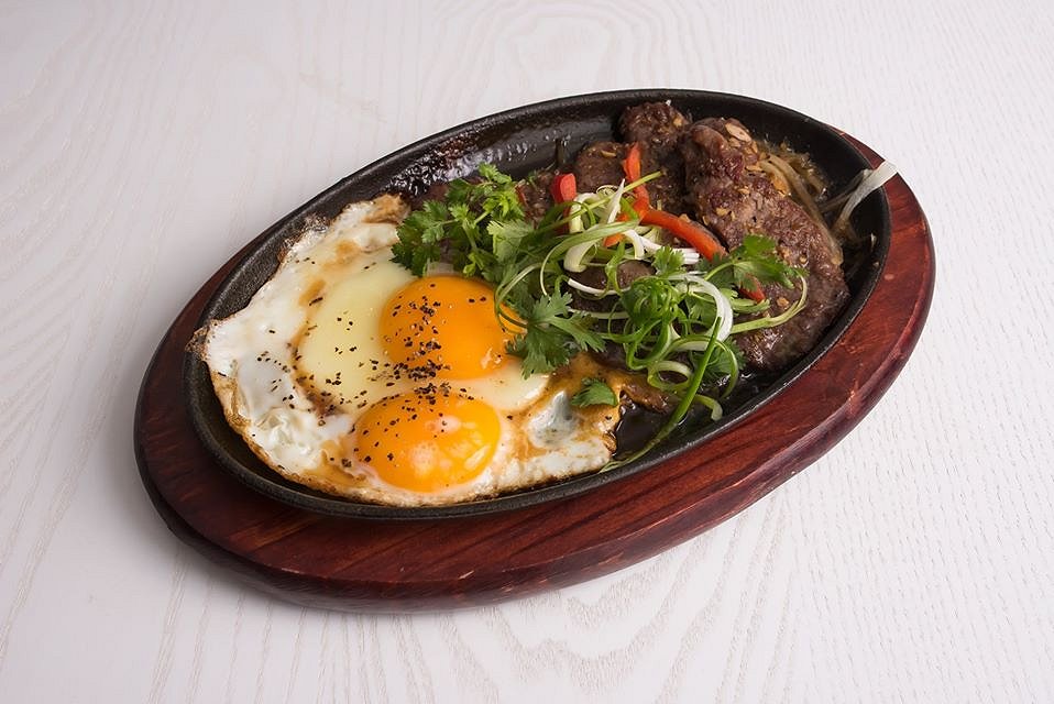 The Vietnamese Sunrise Sizzle Steak “Bo Ne” is Mama Tz most popular dish. It is marinated minute steak on a sizzling hot plate with sunny side up fried eggs served with salad and a bread roll. The best way to eat this dish is to eat everything together. Dip the bread roll into the runny yolk, have it with a bite of steak and eggs together.